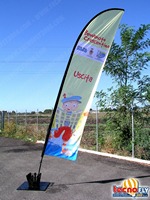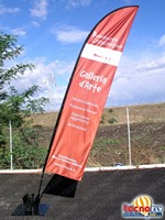 La TecnoFly 2008 S.r.l. fornisce svariati tipi di bandiere tra le quali quelle a sagoma di "pinna", comunemente chiamate bandiere a pinna o ad arco. Vengono costruite in diverse misure, utilizzando materiali di primissima qualità, per un prodotto finale altamente professionale e duraturo nel tempo. Sono complete di basamento metallico, bulloneria, asta fissa più asta flessibile in fibra di vetro, drappo stampato e custodia per il trasporto. Si adattano a tutti gli ambienti dove è necessario utilizzare sistemi di comunicazione versatili e leggeri, come inaugurazioni di negozi, fiere ed ogni tipo di manifestazione. Il drappo è stampato su Poliestere Nautico Alta Tenacità da 110 gr/mq in tecnica digitale, e le rifiniture sono realizzate con macchina da cucire a doppi aghi paralleli, punto all'inglese ribattutto con fili di robusto poliestere. Vengono vendute a coppia o multipli di due pezzi. Smontate possono essere riposte tranquillamente nel bagagliaio di un'auto utilitaria. Le bandiere ad arco o pinna commercializzate dalla TecnoFly 2008 Srl sono della tipologia con struttura in vetroresina, con raccordi in alluminio lavorato finemente al tornio. Queste bandiere sono il giusto compromesso tra un prodotto commerciale e uno di qualità.