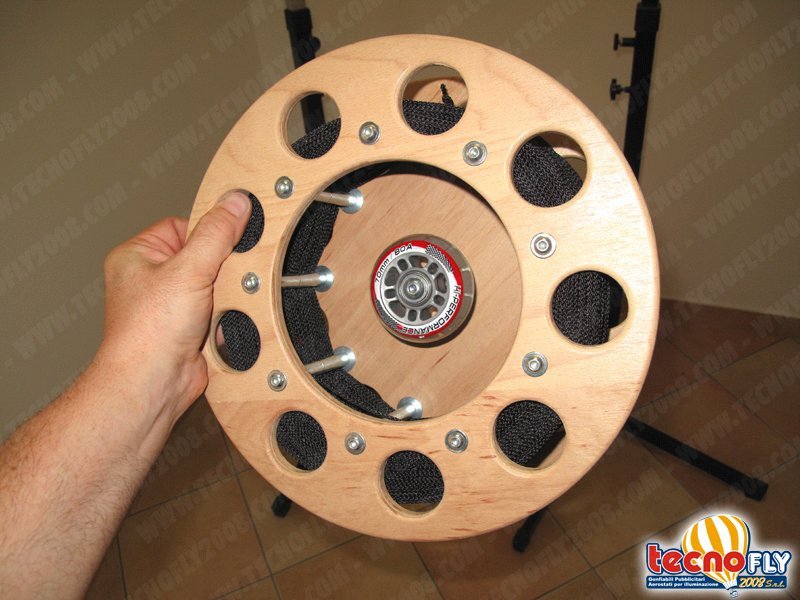 El carrete Pro 290/80 se ha diseñado para las cometas de monofilamento o para globos de dimensiones medias. Está construido con madera contrachapada marina y el sistema de circulación sobre cojinetes de bolas hace de este artículo un objeto sin igual. Las superficies son lacadas y resistentes al agua, y los tornillos M6 se combinan con un sistema de separadores muy robusto y eficaz. La manija interna está constituida por una rueda con doble cojinete de bolas. Las placas laterales (12 mm de espesor) son de madera contrachapada marina con chapa de abedul, con accionamiento manual en madera de haya maciza. El carrete Pro 290/80 tiene un diámetro de 29 cm. El gran tamaño de su compartimento interior permite un manejo perfecto. Velocidad y precisión, evitan las torsiones en los cables, la operación de recuperación es simple, rápido. La profundidad de enrrollamiento es de 50 mm. La amplitud, que depende del modelo elegido, en este caso es de 80 mm. Las diferentes anchuras ofrecen la posibilidad de enrollar cables de sección diferente con longitudes grandes. Elige un PRO-290/80 carrete de madera de TecnoFly 2008, la mejor solución a sus ascensiones de globos y cometas.