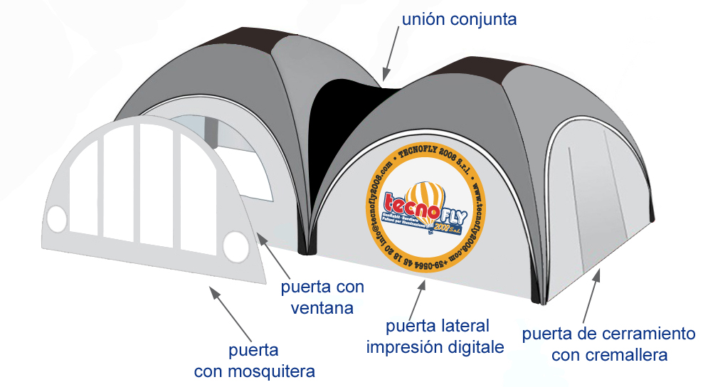 4 cremalleras para la abertura de la 4 paredes laterales