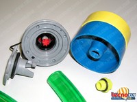 Come ben noto nel campo dei gas compressi, gonfiare un pallone collegandosi direttamente alla bombola di gas carica a 200 Atm (Atmosfere), oltre che ad essere irregolare per legge, può comportare dei rischi per l'operatore preposto al gonfiaggio dei palloni. E' sempre consigliabile utilizzare un riduttore di pressione in grado di abbassare al giusto valore la pressione erogata dalla bombola. In campo aerostatico le bombole utilizzate sono del tipo 40 litri, oppure 50 litri con pressione interna di 200/230 Atm, un valore considerevole, pertanto l'attenzione dell'operatore durante le fasi di gonfiaggio, è fondamentale ai fini della sicurezza sul lavoro. TecnoFly 2008 da sempre sensibile alle necessità di sicurezza, propone una manichetta di alimentazione completa di riduttore professionale con attacco standard per bombole di elio, per il gonfiaggio di palloni come il TLB 180 e il Balloon Photo System, e in generale ogni pallone aerostatico da gonfiare ad elio. Grazie a questo riduttore la pressione in valvola si riduce da 200 a 6 Atmosfere evitando pericolosi "colpi di frusta" della manichetta in caso di scollegamento dal pallone. La manichetta è disponibile in diverse lunghezze e può essere utilizzata per molti tipi di valvole, come quelle riportate nelle foto. In questa sezione è presentato il modello base, senza manometro (misuratore di capacità della bombola), il quale è stato sostituito da un tappo ad alta tenuta di pressione. Questa manichette funziona con il sistema "push to inflate", ovvero piegando in qualsiasi direzione il tubo di gomma in prossimità della parte metallica, si attiva la valvola di alimentazione e fa uscire il gas elio dalla manichetta. Contattateci per una quotazione, saremo a vostra completa disposizione per qualsiasi chiarimento. TecnoFly 2008 distribuisce solo prodotti di qualità.