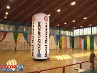 Un gonfiabile è una struttura pressostatica, cioè gonfiata con aria per mezzo di un motore soffiatore elettrico, il quale è perpetuamente in funzione e garantisce la pressione interna al gonfiabile in maniera costante, in tal modo il pallone permane nella sua forma originale. Bisogna notare che il gonfiabile non può assolutamente volare poichè non contiene alcun gas speciale più leggero dell'aria, come al contrario può volare un aerostato (gonfiato ad elio). Un gonfiabile è in definitiva una struttura eccezionale che unisce assieme due fattori antagonisti nel campo pubblicitario: il peso e le dimensioni. Facciamo un esempio pratico: un gonfiabile a sagoma di mongolfiera è certamente una struttura molto grande e certamente di altissimo impatto visivo, ma internamente è gonfiata con aria, quindi allo stesso tempo risulta molto leggera e da sgonfia assume uno spazio ridottissimo in proporzione alla superficie che offre alla visibilità quando è gonfia. Il gonfiabile è proprio questo: un "pallone gonfiato" che da sgonfio passa inosservato, ma da gonfio è maestoso ed imponente ! Servirsi di una struttura gonfiabile per effettuare pubblicità è la scelta migliore in contesti sportivi, soprattutto in competizioni ciclistiche dove si vedono spuntare qua e là archi gonfiabili, mongolfiere, palloni giganteschi che ritraggono marchi, stemmi e scritte pubblicitarie che restano impresse al passante. Sono gonfiabili gli archi o portali, le sagome a forma di mongolfiera, i palloni giganti sferici, le riproduzioni enormi, gli spettacolari gonfiabili per bambini che in questi anni hanno invaso moltissimi parchi giochi.